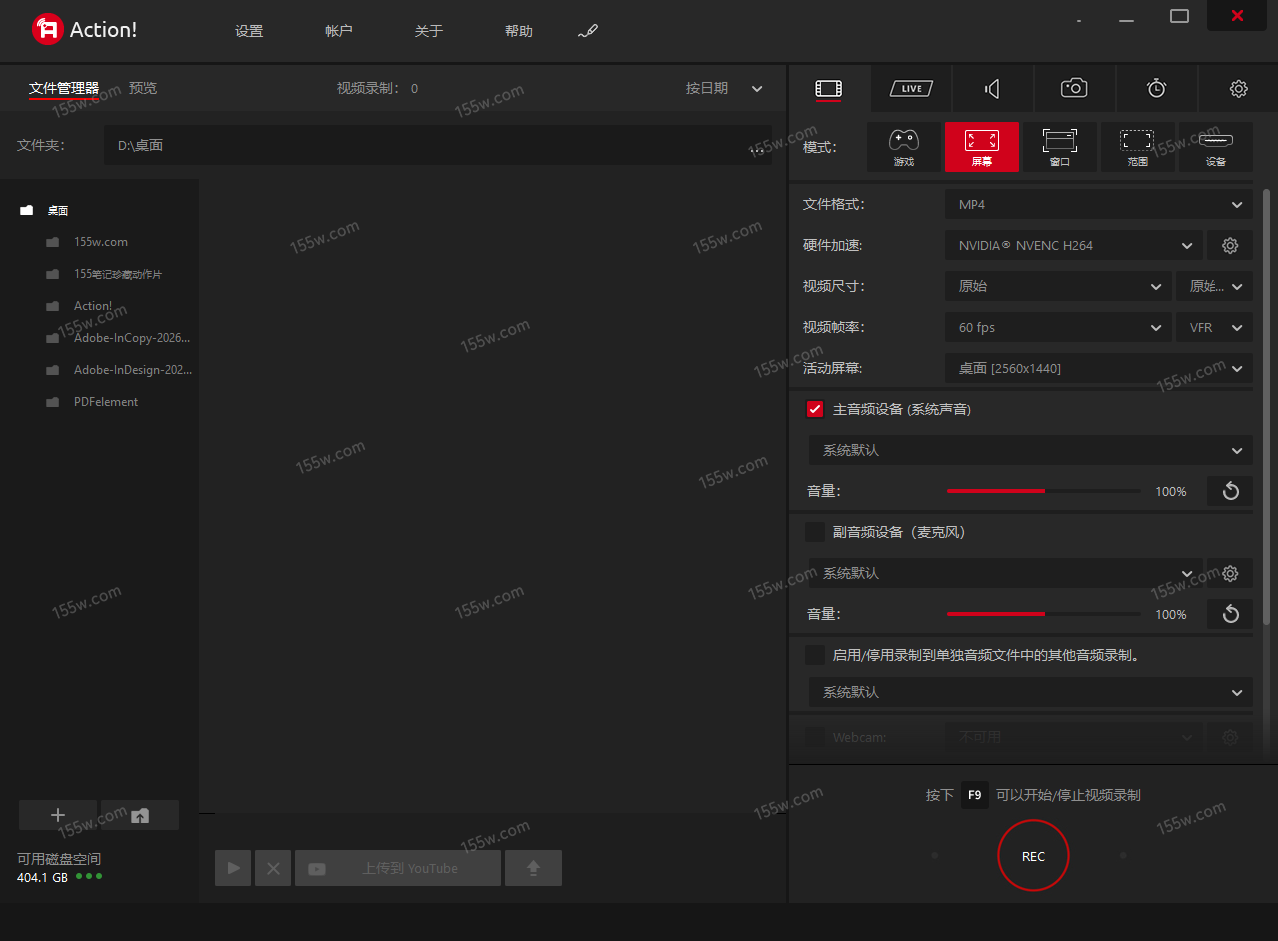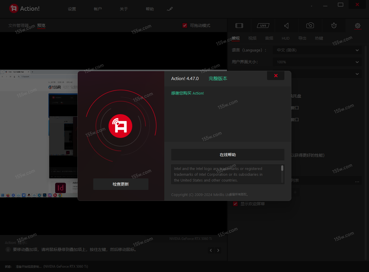 MirillisAction!屏幕录制软件屏幕录制软件支持以超高的高清视频质量直播和实时录制Windows桌面。使用Action!屏幕录制软件您可以录制和直播您正在玩得游戏,网络播放器视频,录制音乐,屏幕截图,添加摄像头画面,麦克风声音等等!