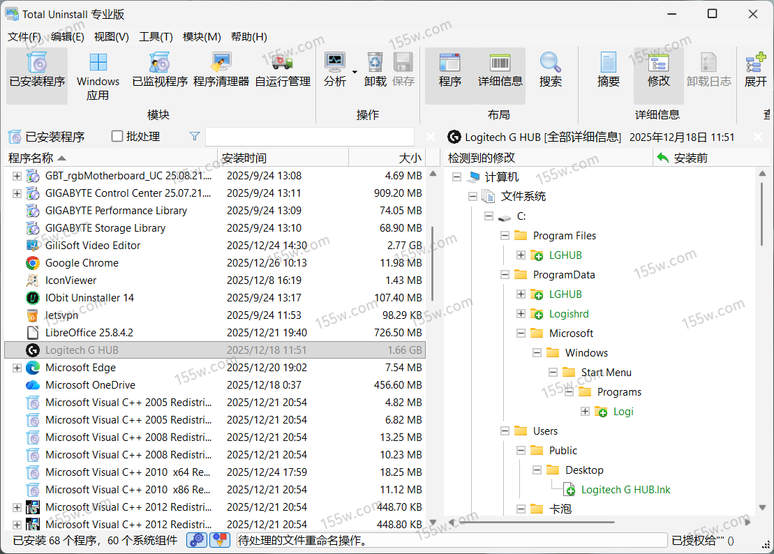 神器 TotalUninstall 能帮你监视软件安装的所有过程,记录下它对系统所做的任何改变,比如:添加的文件、对注册表和系统文件的修改,并制作成安装前和安装后的快照。卸载软件时,不需要使用卸载程序,直接通过该软件便可将其完全地清除出系统,不留下任何痕迹。从而保证了系统的清洁。