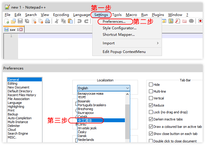 Settings — Preferences — 中文简体