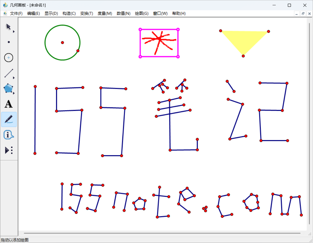 动态几何绘图与探究:提供选择、画点、画线、画圆、文本等基础工具,支持绘制线段、直线、射线、圆、圆弧、多边形等多种几何对象,且对象间存在 “父子关系”—— 修改 “父对象”(如两点)的位置或大小,“子对象”(如两点构成的线段)会自动保持几何关系同步变化;支持通过拖动对象动态展示几何图形的位置关系、运行规律,直观呈现图形变换过程。