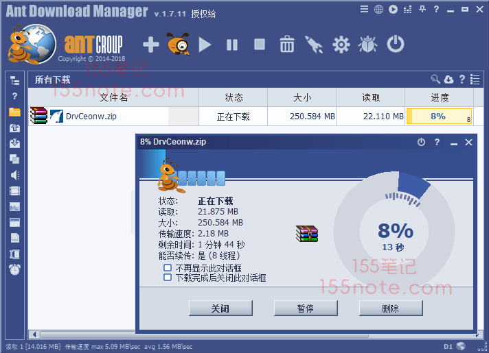 Ant Download Manager(简称 AntDM / 蚂蚁下载器)是一款适配 Windows 系统的全能型下载管理工具,兼顾高速文件下载与媒体流捕获能力,面向普通用户、视频创作者及资源收集爱好者Ant Download Manager。软件支持 HTTP (S)、FTP (S)、BT、磁力链接及 HLS、MPEG‑DASH 等主流流媒体协议,可集成 Chrome、Firefox、Edge 等浏览器一键捕获链接,提供免费版与 Pro 付费版,Pro 版额外包含视频转换、无广告、高级调度等功能,以 “高效下载 + 智能管理 + 媒体适配” 为核心,适配大文件下载、批量资源获取、在线音视频抓取等场景,界面简洁易用,兼顾新手快速上手与资深用户自定义需求Ant Download Manager。