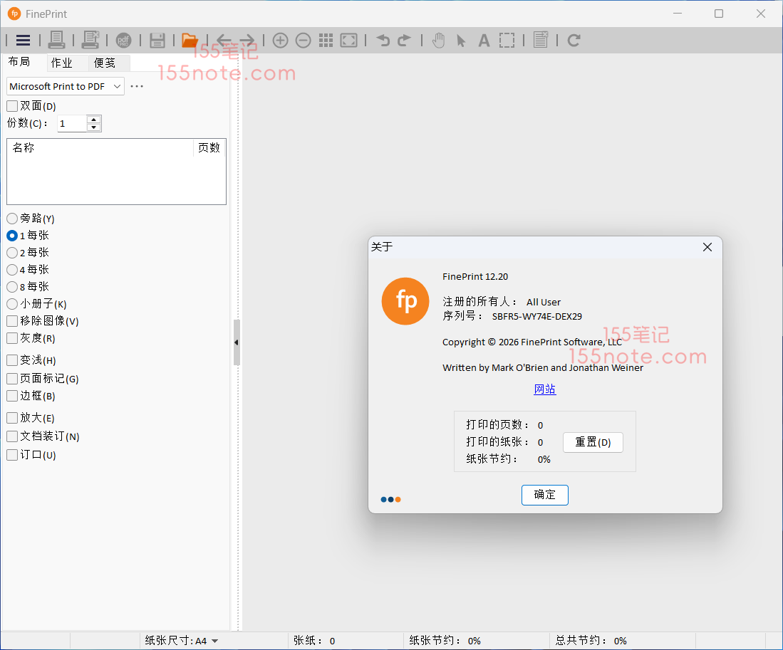 FinePrint 是 FinePrint 公司推出的 Windows 平台虚拟打印机驱动与打印管理软件,核心定位 “环保省纸打印专家”,通过虚拟打印技术拦截任意程序的打印指令,在输出到真实打印机前提供预览、编辑与排版优化能力,无需依赖复杂办公软件即可完成删页、缩印、加水印等操作,主打节省纸张与墨水耗材、简化批量打印流程,适配日常办公、企业文档分发、讲义制作等场景,兼容各类打印机与主流办公应用,大幅降低打印成本与操作复杂度。