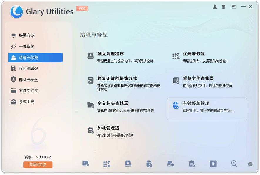 除了核心优化功能,Glary Utilities Pro 还内置了几个小白常用的附加工具,不用额外装软件,一站式解决日常问题: