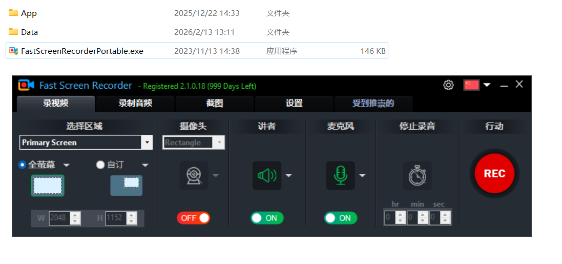 Fast Screen Recorder 是一款轻量化电脑屏幕录制工具,主打简洁易用、流畅低耗,适配 Windows 全版本系统。软件无冗余功能、无捆绑广告,专注核心录屏需求,兼顾日常办公演示、教学讲解、游戏片段、操作教程等录制场景,低配设备也能稳定运行。
