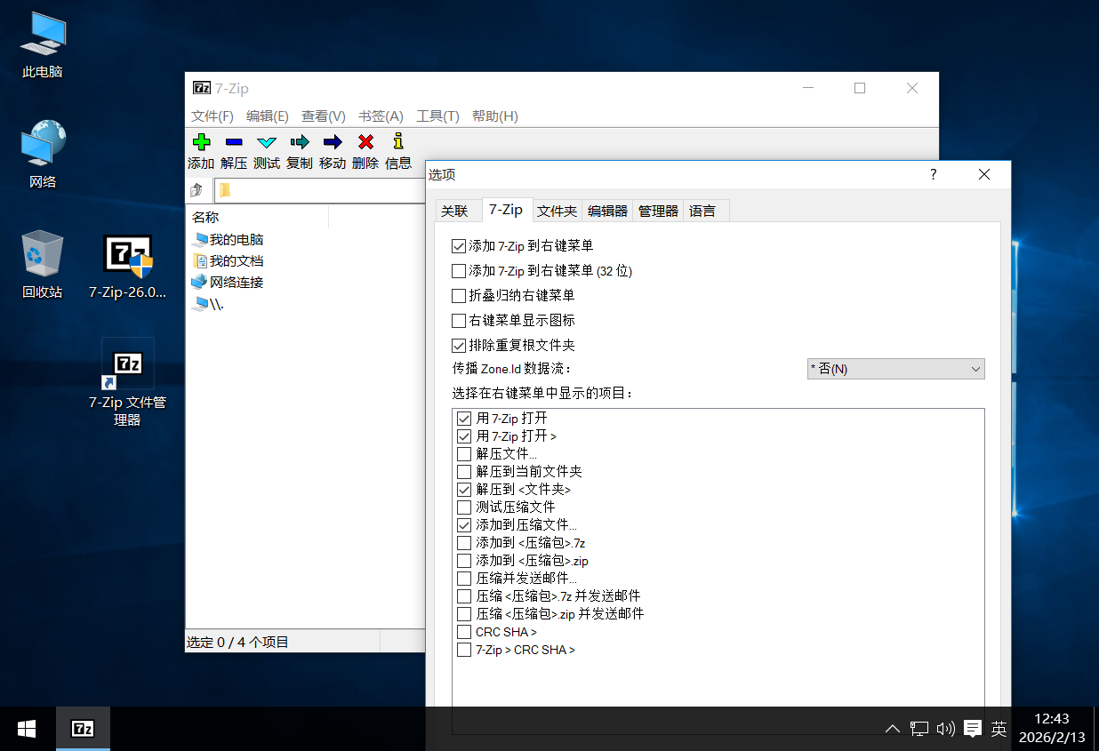 ﹂默认仅关联7z, zip文件类型、默认创建压缩文件时最高压缩比
