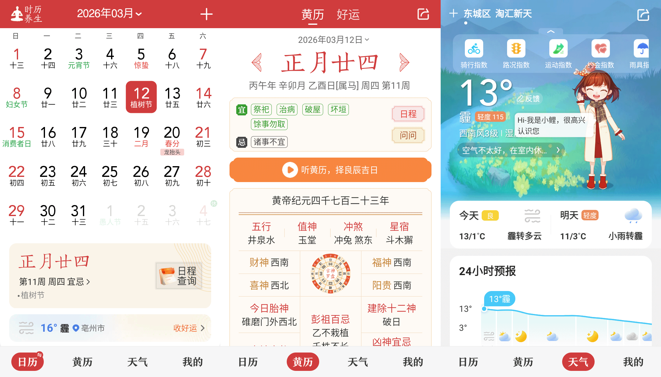 微鲤万年历(原中华万年历)是一款全能型日历生活工具,主打农历黄历查询、精准天气、日程记事、生日提醒、云同步,安卓 /iOS 双平台都能用。它把传统历法与现代时间管理结合,界面简洁、功能全、体积小、速度快,支持多端云同步,适合日常看日期、查天气、记日程、管生日、看资讯,老人和年轻人都能快速上手。