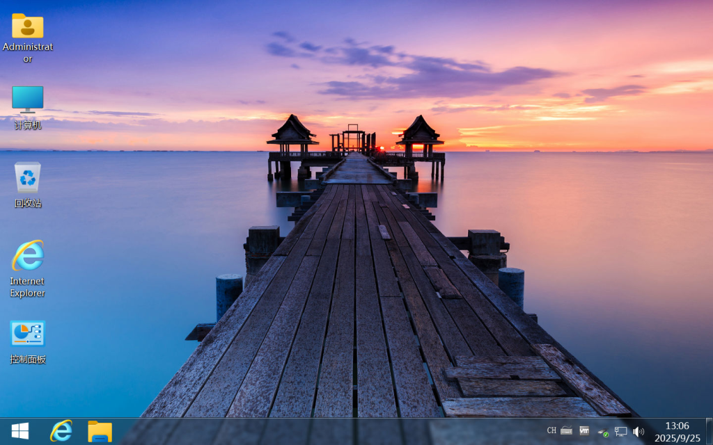 桌面图标显示:用户文档、计算机、网络、回收站、Internet Explorer